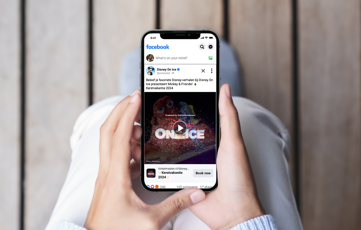 Our Meta (Facebook and Instagram) and PPC campaign for Disney On Ice 2023 used broad targeting in the Netherlands, focusing on Utrecht and was optimised by demographic insights. We launched conversion-focused Advantage+ campaigns and strategic retargeting, running paid social ads with a pre-sale promotion starting seven months in advance. Leveraging Disney On Ice NL and Disney Netherlands accounts boosted transaction rates. Over 10 weeks, Pinterest testing drove 343 conversions. The campaign resulted in an average CPA of €8.53, selling 75% of total capacity and exceeding targets without heavy promotions.